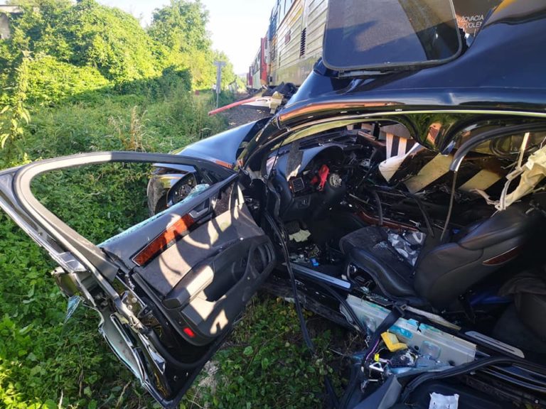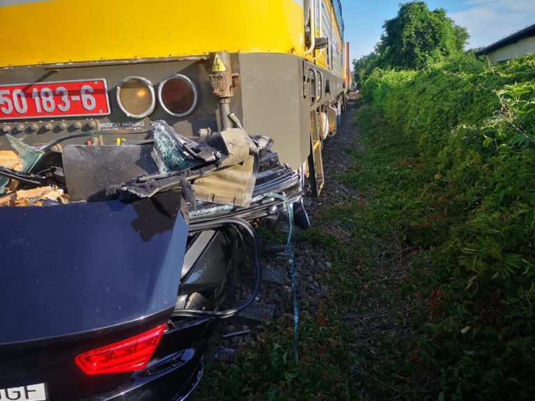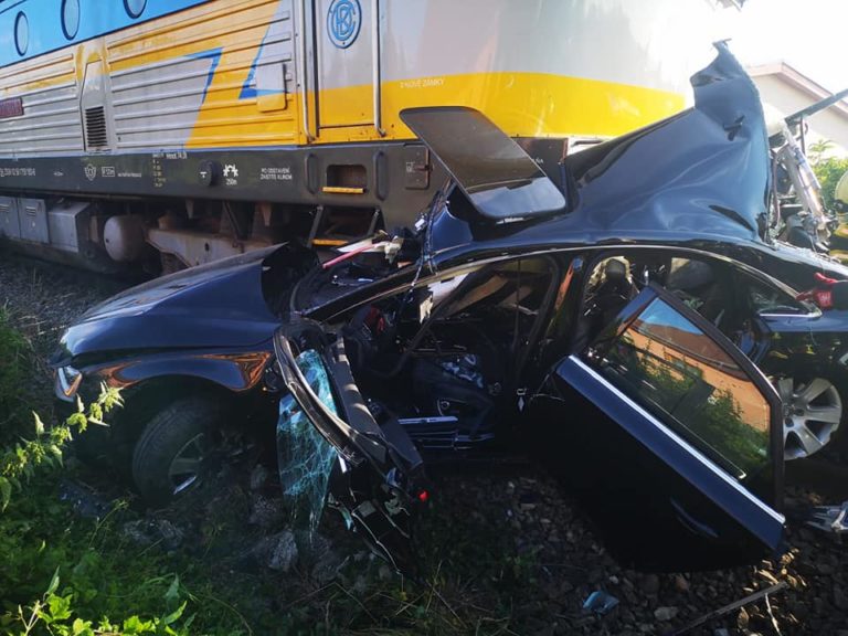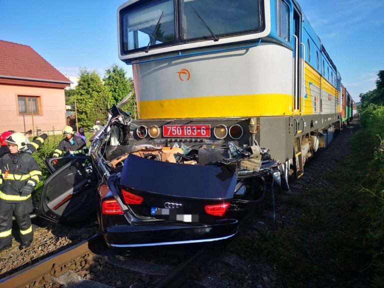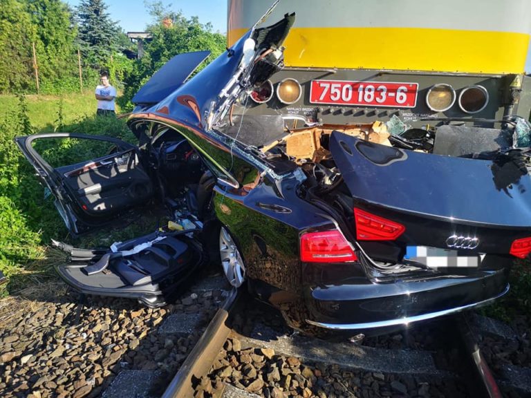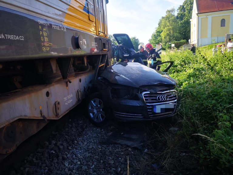Zrážka osobného vlaku s Audi na železničnom priecestí v Nitre Horných Krškanoch, Foto: HaZZ (www.facebook.com)