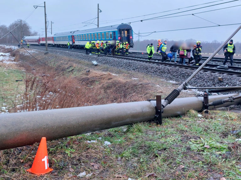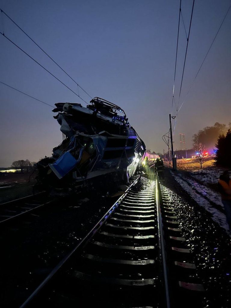 Osobný vlak sa pri obci Dolní Lutyně v okrese Karviná v ranných hodinách zrazil s nákladným vozidlom. Foto: twitter.com