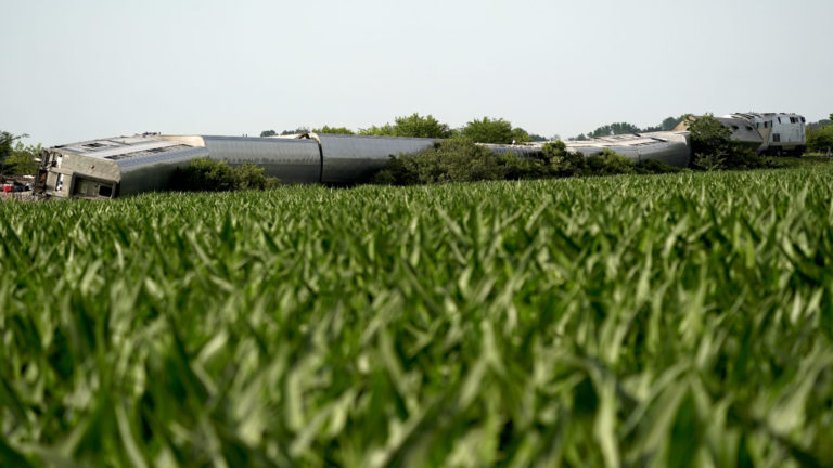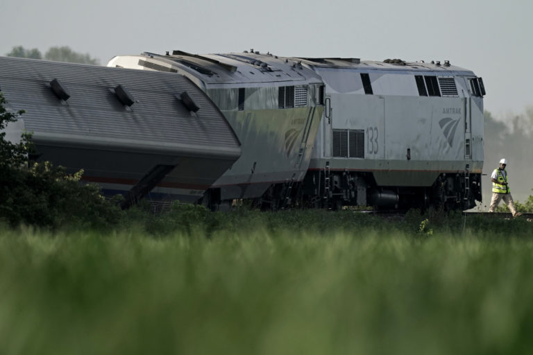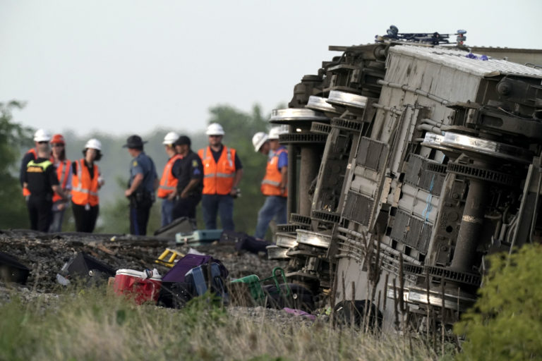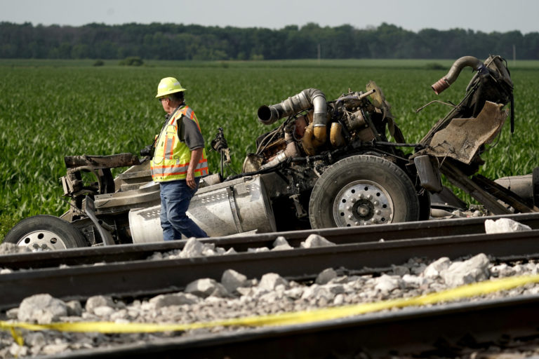 Zrážka vlaku s nákladným autom v štáte Missouri (27. jún 2022). Foto: Dax McDonald via AP.