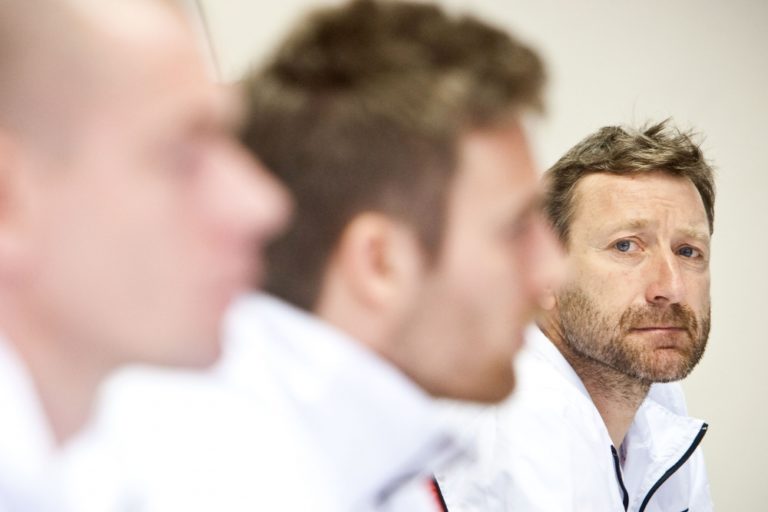 Šéf realizačného štábu Rakúšanov Clemens Trimmel počas TB k žrebu stretnutia 2. kola I. skupiny euroafrickej zóny Davisovho pohára Slovensko - Rakúsko. Bratislava, 3. apríl 2014. Foto: SITA/Gabriel Kuchta