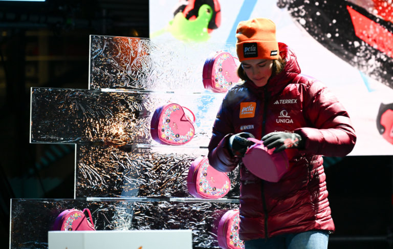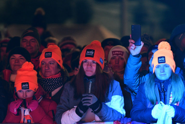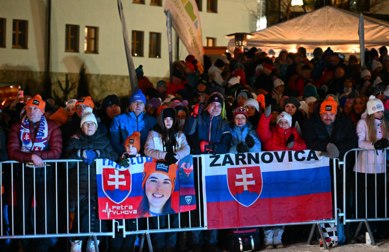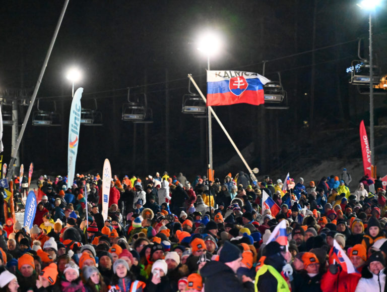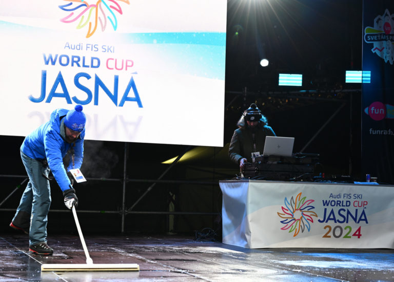 Atmosféra počas verejného žrebovania čísel na preteky obrovského slalomu žien v rámci Svetového pohára v alpskom lyžovaní v lyžiarskom stredisku Jasná v Demänovskej doline. Demänovská Dolina, 19. január 2024. Foto: SITA/Martin Medňanský
