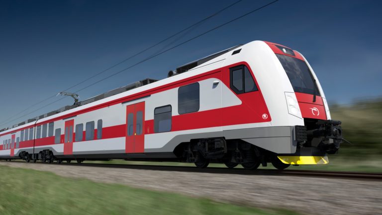Exteriér novej modernej elektrickej jednotky pre regionálnu dopravu Železničnej spoločnosti Slovensko (ZSSK) v okolí Žiliny. Foto: SITA/ZSSK