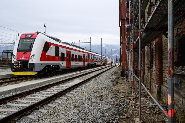 Nová elektrická jednotka železničnej spoločnosti Slovensko (ZSSK) počas jej predstavenia v rušňovom depe Vrútky. Vrútky, 6. február 2020. Foto: SITA/Milo Fabian