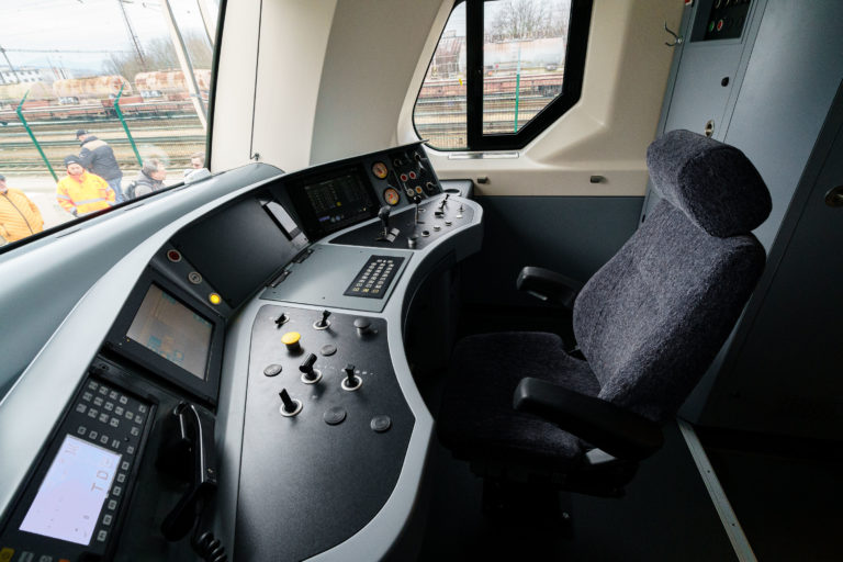 Pracovisko strojvodcu novej elektrickej jednotky železničnej spoločnosti Slovensko (ZSSK) počas jej predstavenia v rušňovom depe Vrútky. Vrútky, 6. február 2020. Foto: SITA/Milo Fabian