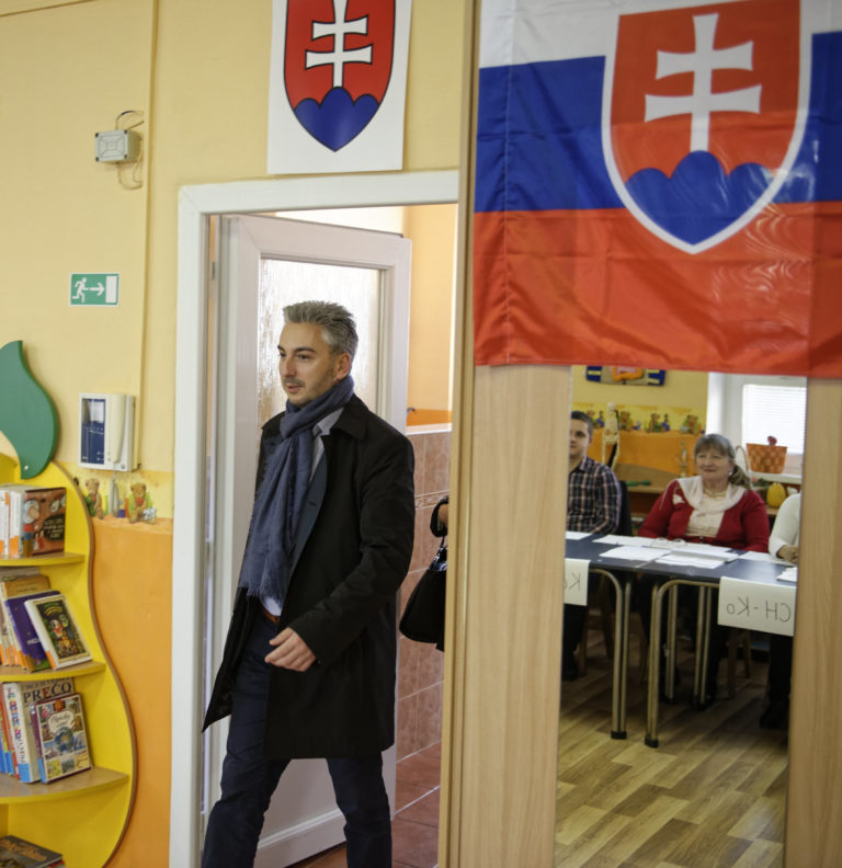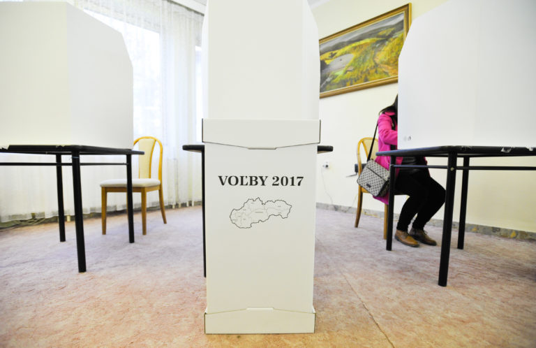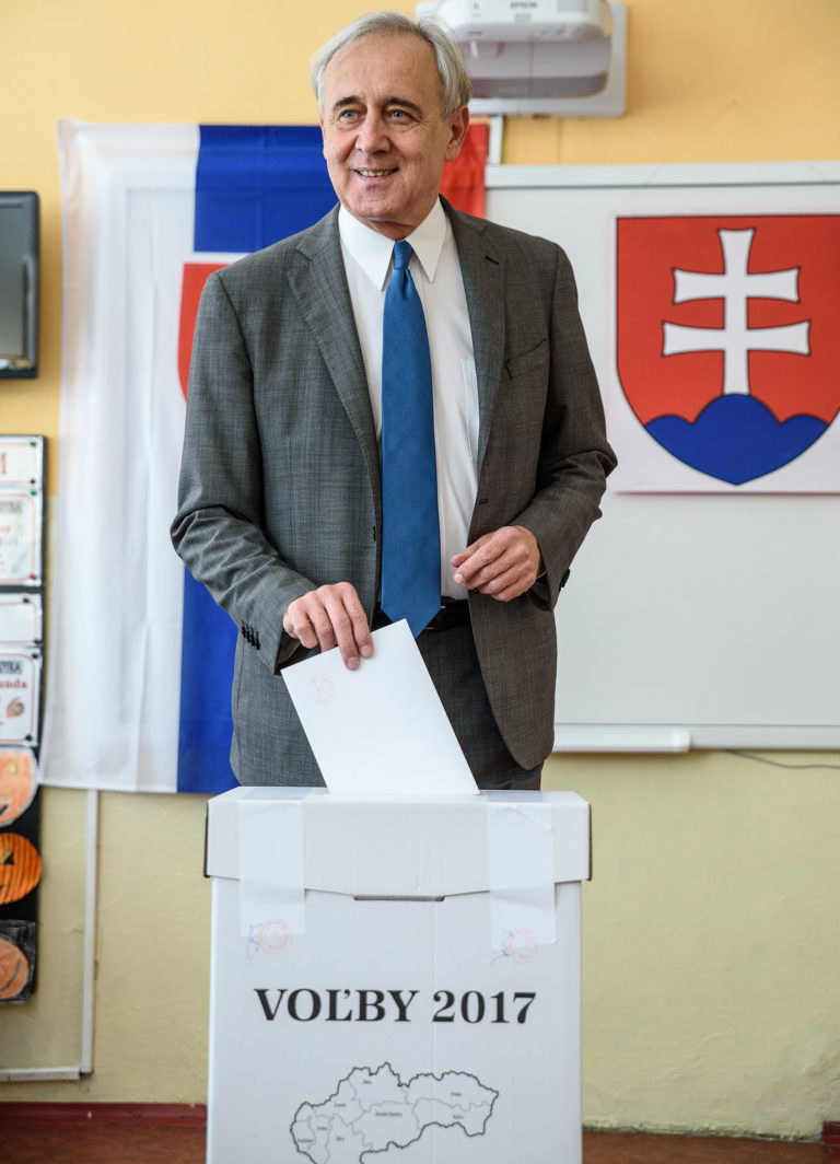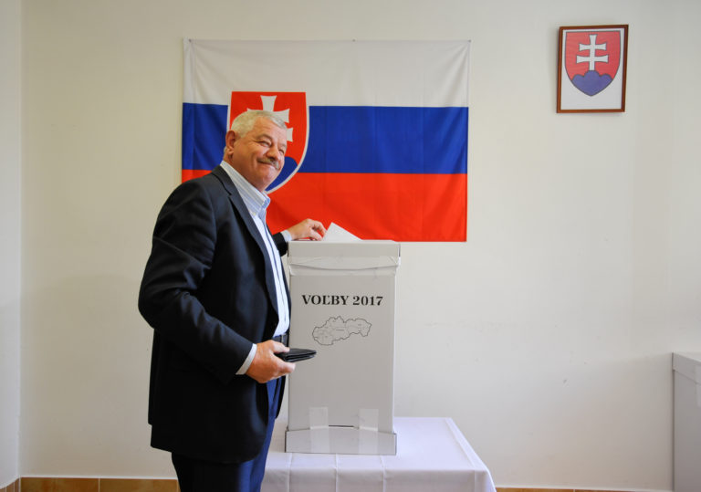 Predseda Národnej rady SR a predseda strany SNS Andrej Danko Andrej Danko (uprostred) vo volebnej miestnosti v Miloslavove počas volieb poslancov a predsedov do orgánov samosprávnych krajov - vyšších územných celkov (VÚC) v Bratislavskom samosprávnom kraji (BSK). Miloslavov Alžbetin Dvor, 4. november 2017. Foto: SITA/Diana Černáková