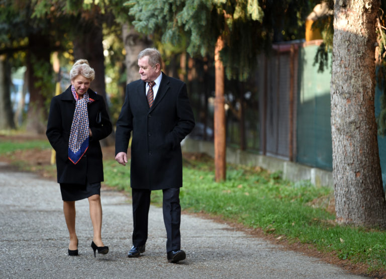 Kandidát na post predsedu BSK Milan Ftáčnik s manželkou prichádza do volebnej miestnosti počas volieb poslancov a predsedov do orgánov samosprávnych krajov - vyšších územných celkov (VÚC) v Bratislavskom samosprávnom kraji (BSK). Bratislava, 4. november 2017. Foto: SITA/Ľudovít Vaniher
