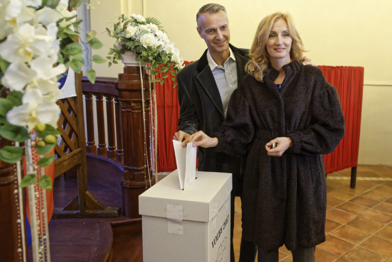 Primátor Košíc a kandidát na post predsedu Košického samosprávneho kraja (KSK) Richard Raši (vľavo) s manželkou počas volieb poslancov a predsedov do orgánov samosprávnych krajov - vyšších územných celkov (VÚC) v KSK. Košice, 4 november 2017. Foto: SITA/Ivan Fleischer
