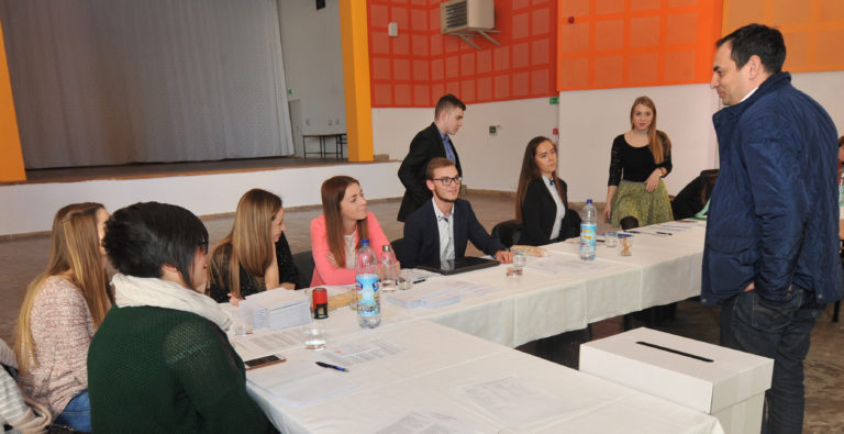 Kandidát na predsedu NSK Ján Greššo (vpravo) počas volieb poslancov a predsedov do orgánov samosprávnych krajov - vyšších územných celkov (VÚC) v Nitrianskom samosprávnom kraji (NSK). Nitra, 4. november 2017. Foto: SITA/Martin Havran