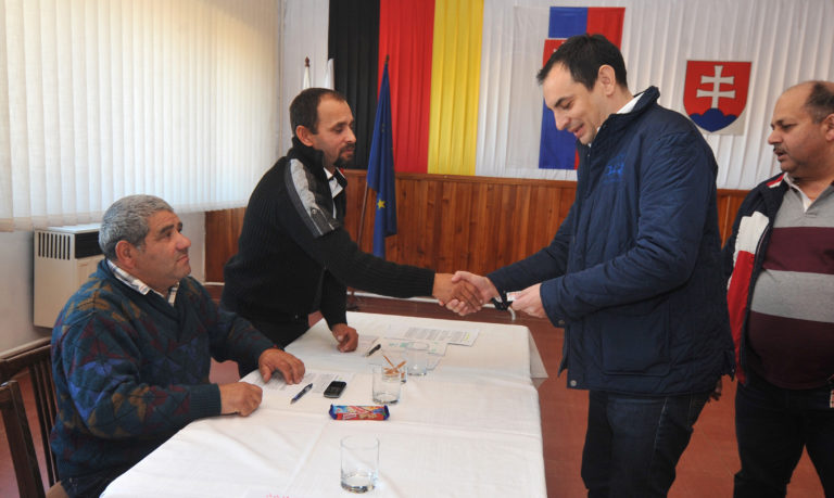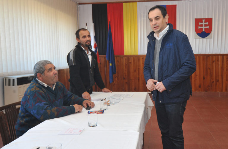 Zľava: Člen štátnej komisie pre voľby a kontrolu financovania politických strán za hnutie Obyčajní ľudia a nezávislé osobnosti (OĽaNO) Peter Pollák a starosta obce Jarovnice Florián Giňa počas volieb poslancov a predsedov do orgánov samosprávnych krajov - vyšších územných celkov (VÚC) v Prešovskom samosprávnom kraji (PSK). Jarovnice, 4. november 2017. Foto: SITA/Viktor Zamborský