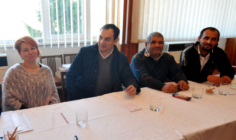 Člen štátnej komisie pre voľby a kontrolu financovania politických strán za hnutie Obyčajní ľudia a nezávislé osobnosti (OĽaNO) Peter Pollák (druhý zľava) pri monitorovaní priebehu volieb v Jarovniciach. Jarovnice, 4. november 2017. Foto: SITA/Viktor Zamborský