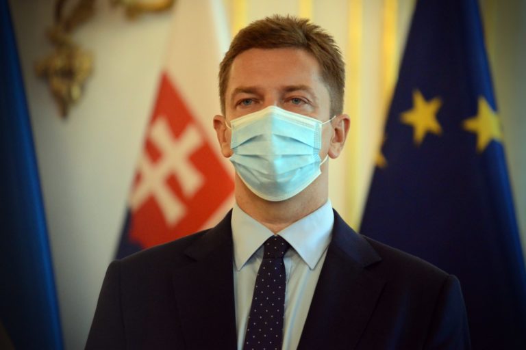 Minister dopravy a výstavby SR Andrej Doležal pred podpisom bilaterálnych dohôd ministrom infraštruktúry Ukrajiny a ministrom dopravy a výstavby SR medzi Slovenskom a Ukrajinou za účasti prezidentky SR a prezidenta Ukrajiny v Prezidentskom paláci v rámci návštevy ukrajinského prezidenta na Slovensku. Bratislava, 24. september 2020. Foto: SITA/Jakub Julény
