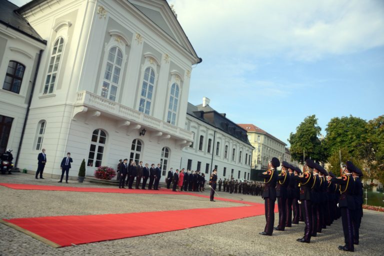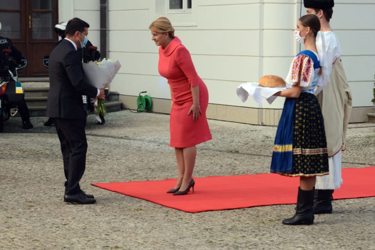 Atmosféra počas oficiálneho privitácieho ceremoniálu pred Prezidentským palácomv rámci návštevy ukrajinského prezidenta na Slovensku. Bratislava, 24. september 2020. Foto: SITA/Jakub Julény