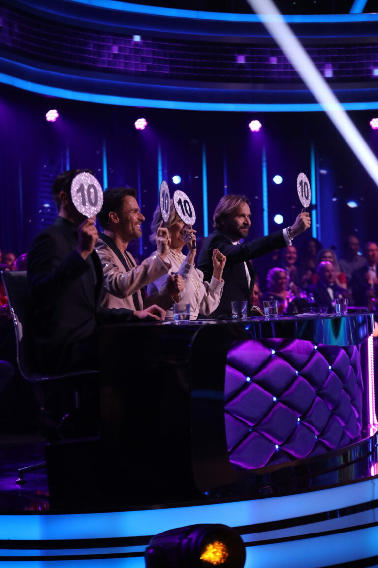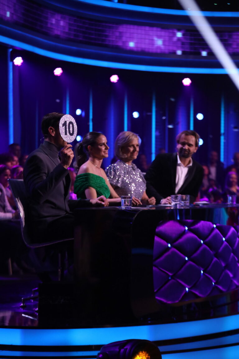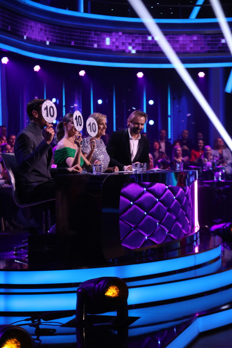 Porota v 7. kole Let’s Dance 2025 ocenila 40 bodmi contemporary Zuzany Porubjakovej a Jaroslava Ihringa. Bratislava, 13. apríl 2025. Foto: TV Markíza.