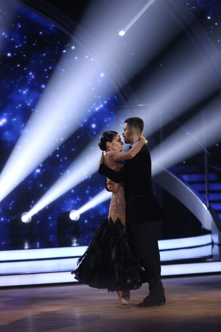 Zuzana Porubjaková a Jaroslav Ihring počas druhého priameho prenosu Let’s Dance 2025, v ktorom tancovali slowfox (9. marec 2025). Foto: TV Markíza.