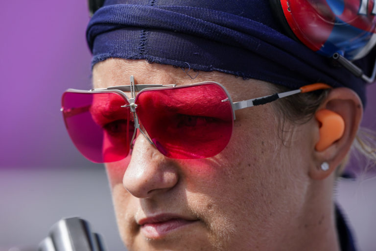 Spokojná slovenská reprezentantka Zuzana Rehák Štefečeková počas finále v trape žien na letnej olympiáde v Tokiu. Tokio, 29. júl 2021. Foto: Archívne, SITA/AP