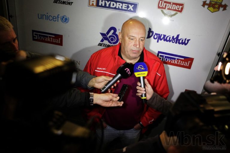 Jozef Turek v rozhovore pre médiá po dohrávke 1. kola Tipsport extraligy medzi HKM Zvolen - HC ´05 Banská Bystrica. Dohrávka od 58:33 min za stavu 4:3. Zvolen, 7. október 2014. Foto: SITA/Ján Viazanička
