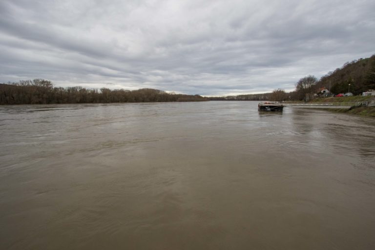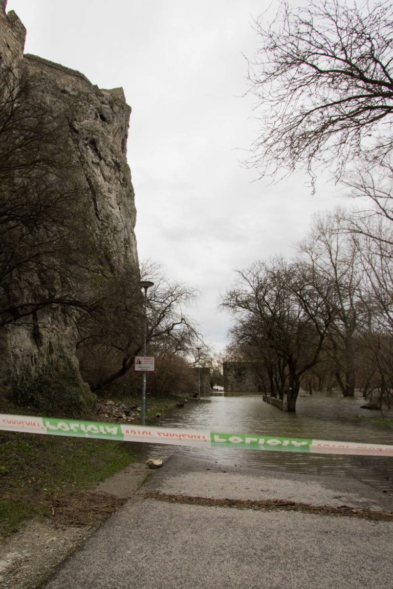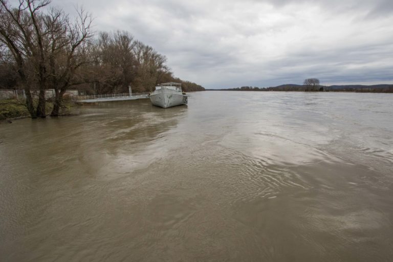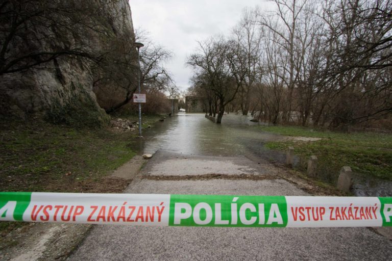 Pohľad na zvýšenú hladinu Dunaja v bratislavskej mestskej časti Devín, pod Hradom Devín. Bratislava, 25. december 2023. Foto: SITA/Ľudovít Vaniher.