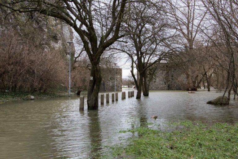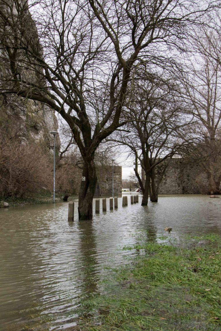 Pohľad na zvýšenú hladinu Dunaja v bratislavskej mestskej časti Devín. Bratislava, 25. december 2023. Foto: SITA/Ľudovít Vaniher.