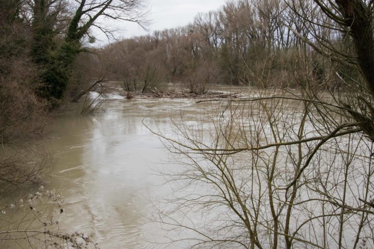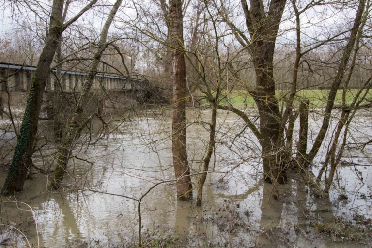 Pohľad na zvýšenú hladinu Dunaja pri vodárenskom ostrove Sihoť. Bratislava, 25. december 2023. Foto: SITA/Ľudovít Vaniher.