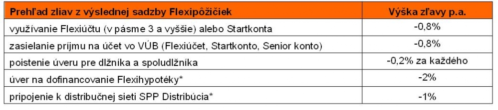 VÚB banka až do konca mája ponúka všetky Flexipôžičky bez poplatku za poskytnutie úveru, ktorého štandardná výška je 2% z objemu úveru, minimálne 33 eur. Klientom, ktorí plánujú zveľadiť svoje bývanie, ponúka navyše teraz VÚB banka Flexipôžičku na bývanie so zvýhodnenými podmienkami. „V rámci aktuálnej kampane sa väčšina žiadateľov kvalifikuje na jednotnú sadzbu 9,9% ročne, ktorú si môžu následne znížiť až o ďalšie 4% ročne,“ hovorí Melinda Burdanová, vedúca oddelenia úverov VÚB banky. Záujemcova tak môžu získať Flexipôžičku na bývanie už od 5,9% ročne. Podmienkou získania jednotnej sadzby je výška úveru aspoň 6 000 eur a aspoň priemerná bonita žiadateľa.