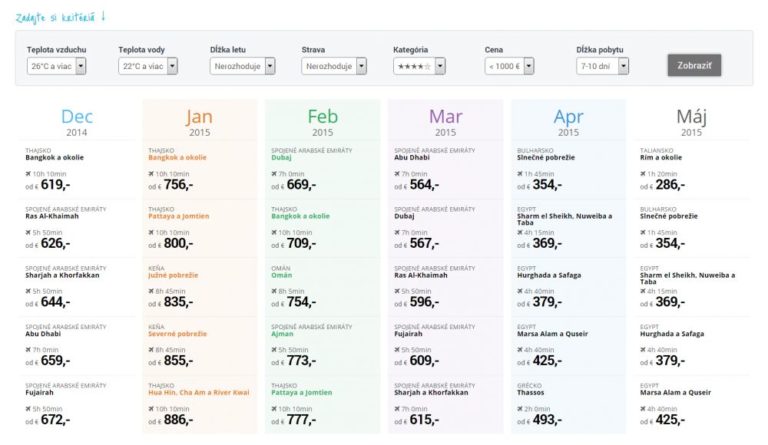 Pomôcka pri výbere dovolenkovej destinácie podľa počasia, dĺžky letu a ceny
