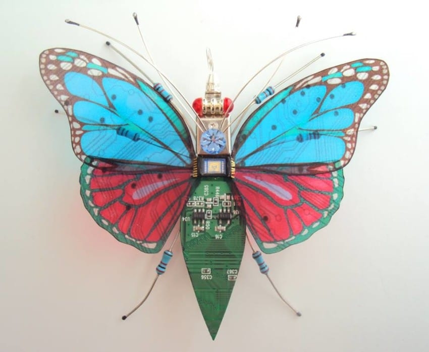 A tu prišla umelkyňa Julie Alice Chappell so skvelým nápadom. Rovnako ako mnoho iných umelcov, aj ona používa svoj talent a rieši aktuálne dianie s cieľom zvýšiť povedomie o elektronických odpadoch, jeho vplyv a to, ako môžu byť recyklované do niečoho nového. Chappell používa obvodové dosky, drôty a iné drobné komponenty z počítačov a ďalšej elektroniky do jemných sôch hmyzu. Pozrite sa, ako využíva aj ďalšie časti počítačov.