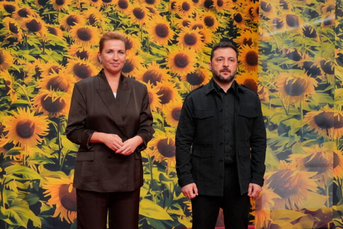Dánska premiérka Mette Frederiksenová (vľavo) víta ukrajinského prezidenta Volodymyra Zelenského (vpravo) pred zasadnutím Európskeho politického spoločenstva (EPC) v Kodani v Dánsku, vo štvrtok 2. októbra 2025.Foto: Emil Helms/Ritzau Scanpix via AP