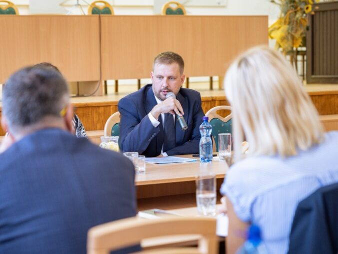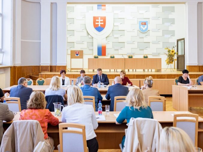 Minister zdravotníctva SR Kamil Šaško (uprostred) počas koordinačného stretnutia odborníkov na Okresnom úrade v Nitre k riešeniu situácie v súvislosti s výskytom a šírením vírusovej hepatitídy typu A v Nitrianskom kraji. Nitra, 16. september 2025.Foto: SITA/Ministerstvo zdravotníctva SR