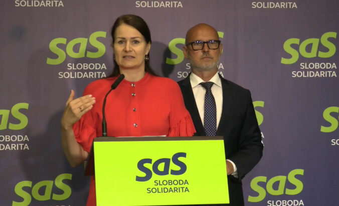 Poslankyňa za stranu SaS Martina Bajo Holečková a predseda SaS Branislav Gröhling.Reprofoto: www.facebook.com
