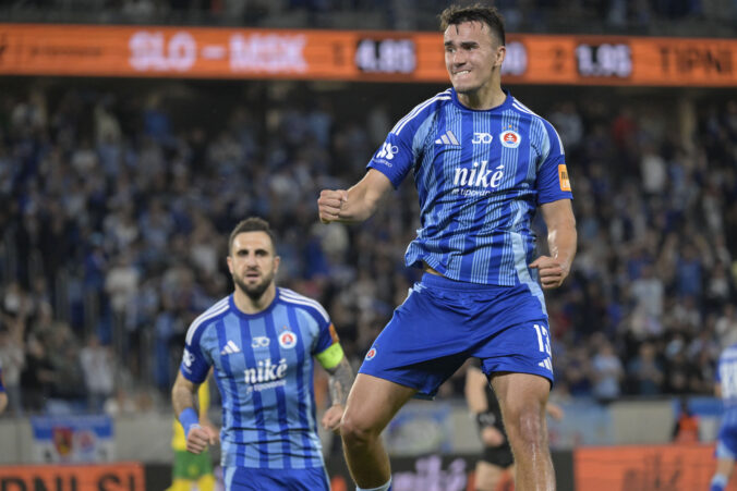 Dávid Strelec z ŠK Slovan Bratislava v akcii počas zápasu slovenskej futbalovej Niké ligy.Foto: archívne, SITA/Milan Illík