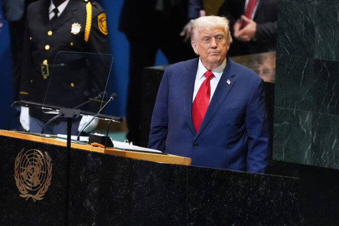 Prezident Donald Trump počas stretnutia s francúzskym prezidentom Emmanuelom Macronom počas zasadnutia Valného zhromaždenia Organizácie Spojených národov, v utorok 23. septembra 2025 v New Yorku.Foto: SITA/AP