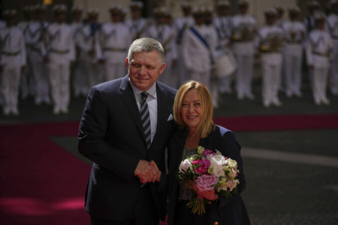 Zľava: slovenský premiér Robert Fico a talianska premiérka Giorgia Meloniová.Foto: SITA/AP.
