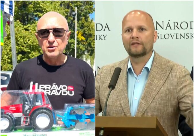 Na snímke Zoroslav Kollár a Jaroslav Naď (Demokrati).Reprofoto: facebook.com/reel/765783706417920/?s=single_unit - koláž SITA Webnoviny.