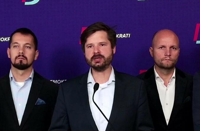 Predseda strany Demokrati Jaroslav Naď (v strede) s kolegami na tlačovej konferencii.Foto: reprofoto, www.facebook.com