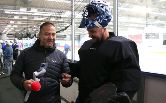 novinár nemeckej televíze Tag 24 a slovenský brankár Július HudáčekFB Tag 24