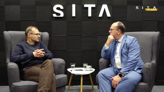 Kacper Rękawek v roczhovore s Mirosławom Wlachovským potas nahrávania video podcastu v Štúdiu SITA.Foto: SITA.