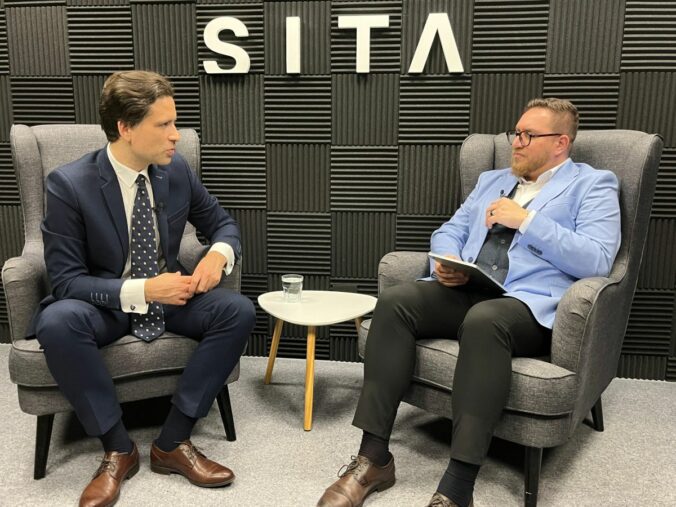 Hlavný ekonóm Trinity Bank Lukáš Kovanda (vľavo) počas rozhovoru pre agentúru SITA v podcaste Má to Filipa.Foto: SITA.