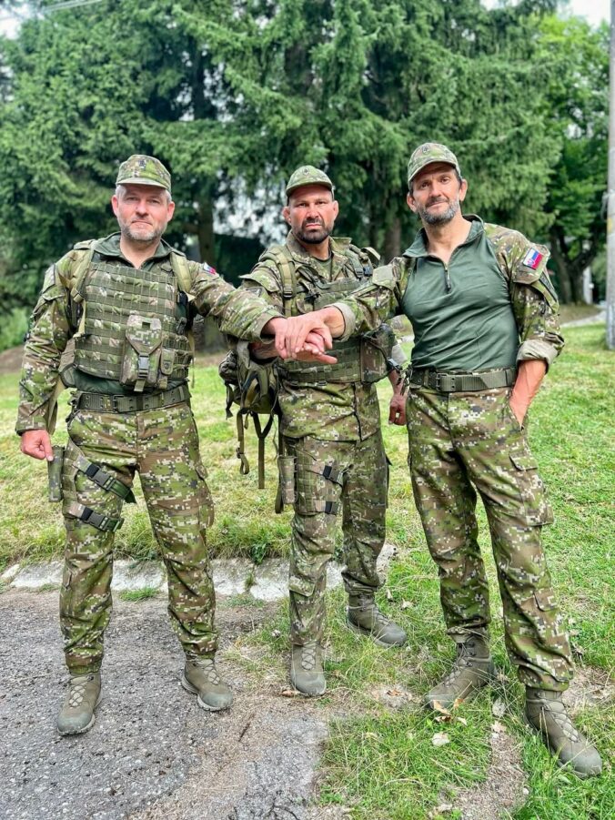 Prezident Peter Pellegrini, zápasník MMA Attila Végh a minister obrany Robert Kaliňák na výcviku do Národných obranných síl.Instagram/attilavegh