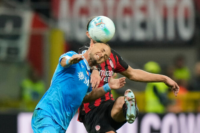 Stanislav Lobotka v súboji s Adrienom Rabiotom v nedávnom zápase SSC Neapol proti AC Miláno.Foto: SITA/AP