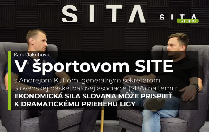 Andrej Kuffa, generálny sekretár Slovenskej basketbalovej asociácie v rozhovore s Karolom Jakubovičom pri natáčaní video podcastu V športovom site v Štúdiu SITAFoto: SITA.