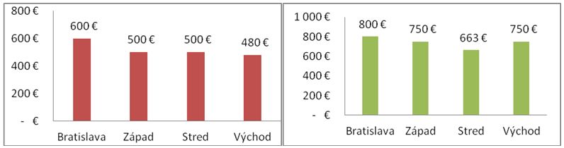 Finančne najzaujímavejším regiónom Slovenska je bez prekvapenia Bratislava, na opačnom konci je východné Slovensko. Rozdiely však nie sú výrazné. Východoslováci si však s pribúdajúcou praxou polepšia najviac. Naopak, najpomalšie rastie mzda absolventom SOŠ na strednom Slovensku. Príčinou je zrejme aj odlišná štruktúra priemyslu v jednotlivých regiónoch, s čím súvisí výskyt odlišných pracovných pozícií, ktoré sú aj odlišne finančne ohodnocované.