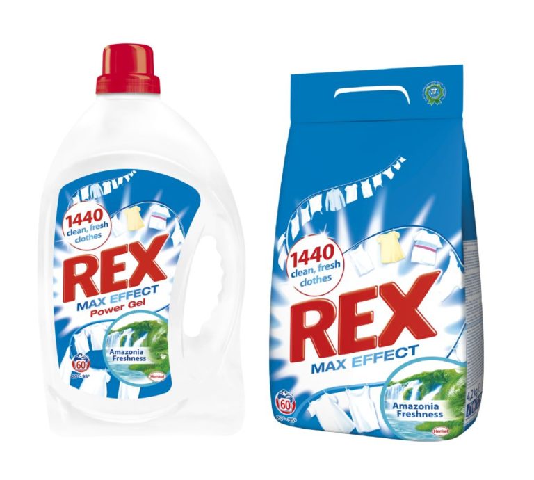 Vďaka jedinečnej receptúre s novou kombináciou enzýmov umožňuje Rex Max Effect maximálnu účinnosť prania pre rôzne typy oblečenia, od bieleho až po tie najfarebnejšie kúsky. ,,Balenie dvadsiatich pracích dávok vyperie až 480 kusov oblečenia. Nový Rex vyperie veľa, ale stojí málo. Oblečeniu tak dodá čistotu a nádhernú sviežosť bez toho, aby ohrozil váš rodinný rozpočet.“ Hovorí Jana Očadlíková, marketingová manažérka divízie Pracích a čistiacich prostriedkov Henkel ČR.