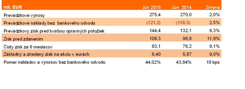 Z pohľadu efektívnosti sa VÚB tiež darilo. Udržala si pomer nákladov a výnosov na vynikajúcej úrovni 44% (bez bankového odvodu). Hrubé prevádzkové výnosy skupiny VÚB sa medziročne zvýšili o 2% na 275,4 mil. eur. Tento výsledok sme dosiahli vďaka výnosom z poplatkov a iným prevádzkovým príjmom. Prevádzkový zisk skupiny VÚB medziročne vzrástol o 9,3% na 144,4 mil. eur a čistý zisk vzrástol o 9,1% na 83,1 mil. eur.